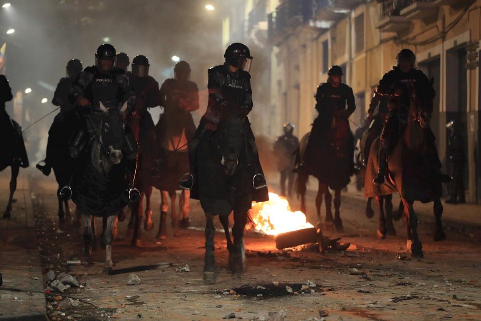 Las protestas que terminaron violentamente se registraron cerca de la sede de Gobierno, en el centro histórico de Quito. La policía lanzó gases lacrimógenos contra los grupos que se mantenían en las calles a pesar de la medida de excepción decretada horas antes por el presidente.