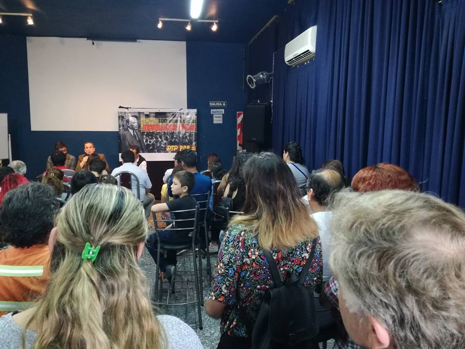 Este martes 7 de octubre se llevó a cabo una disertación conmemorando los 100 años de la Revolución Rusa a sala llena en el IOPPS. Con claridad Alberto Agüero, presidente del Partido Comunista Revolucionario (PCR) y del Partido del Trabajo y el Pueblo (PTP) de San Juan, realizó un análisis de las implicancias históricas de este proceso revolucionario, sus antecedentes, el desarrollo y luego el triunfo histórico que demostró que obreros y campesinos podían dirigir y organizar un Estado de nuevo tipo: El Socialista.
