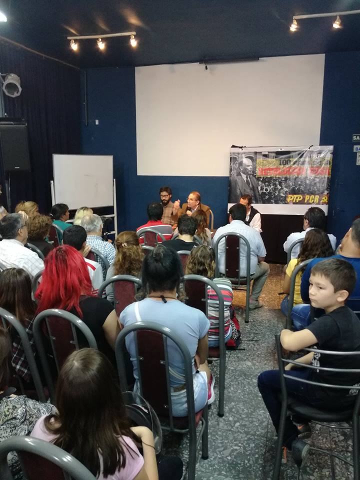 Finalizando con la exposición Alberto Agüero puso énfasis en la necesaria vigencia de las enseñanzas de la revolución rusa para enfrentar los tiempos actuales. “Los distintos gobiernos que se han sucedido en la argentina, posterior al derrocamiento de la dictadura, con la alternancia en el poder del Estado de variantes liberales y populista, que no han resuelto los grandes problemas del país, confirman la teoría leninista de la necesidad de la revolución democrática popular antiimperialista dirigida por el proletariado y su partido PCR-PTP en el camino del socialismo”, destacó.