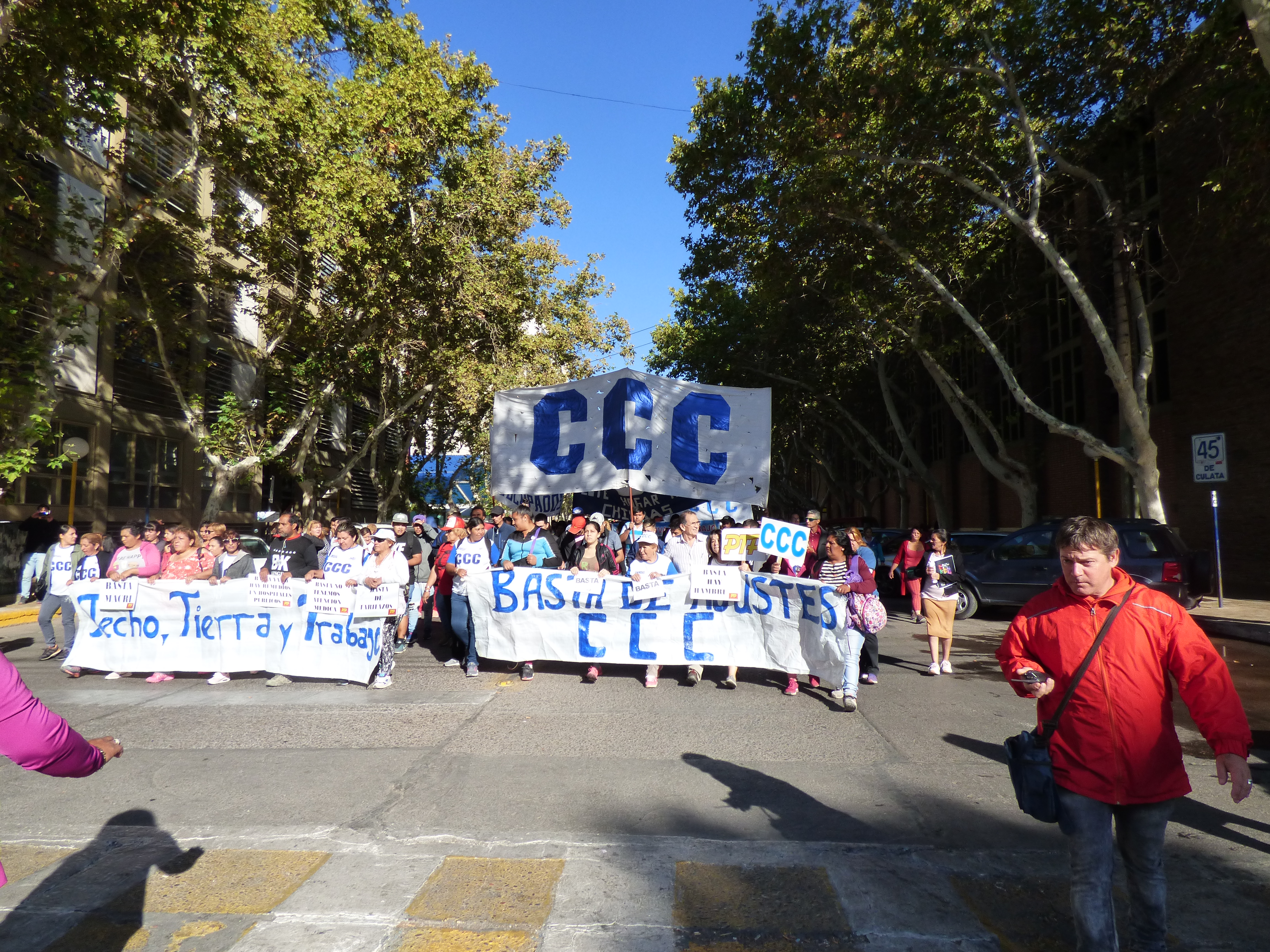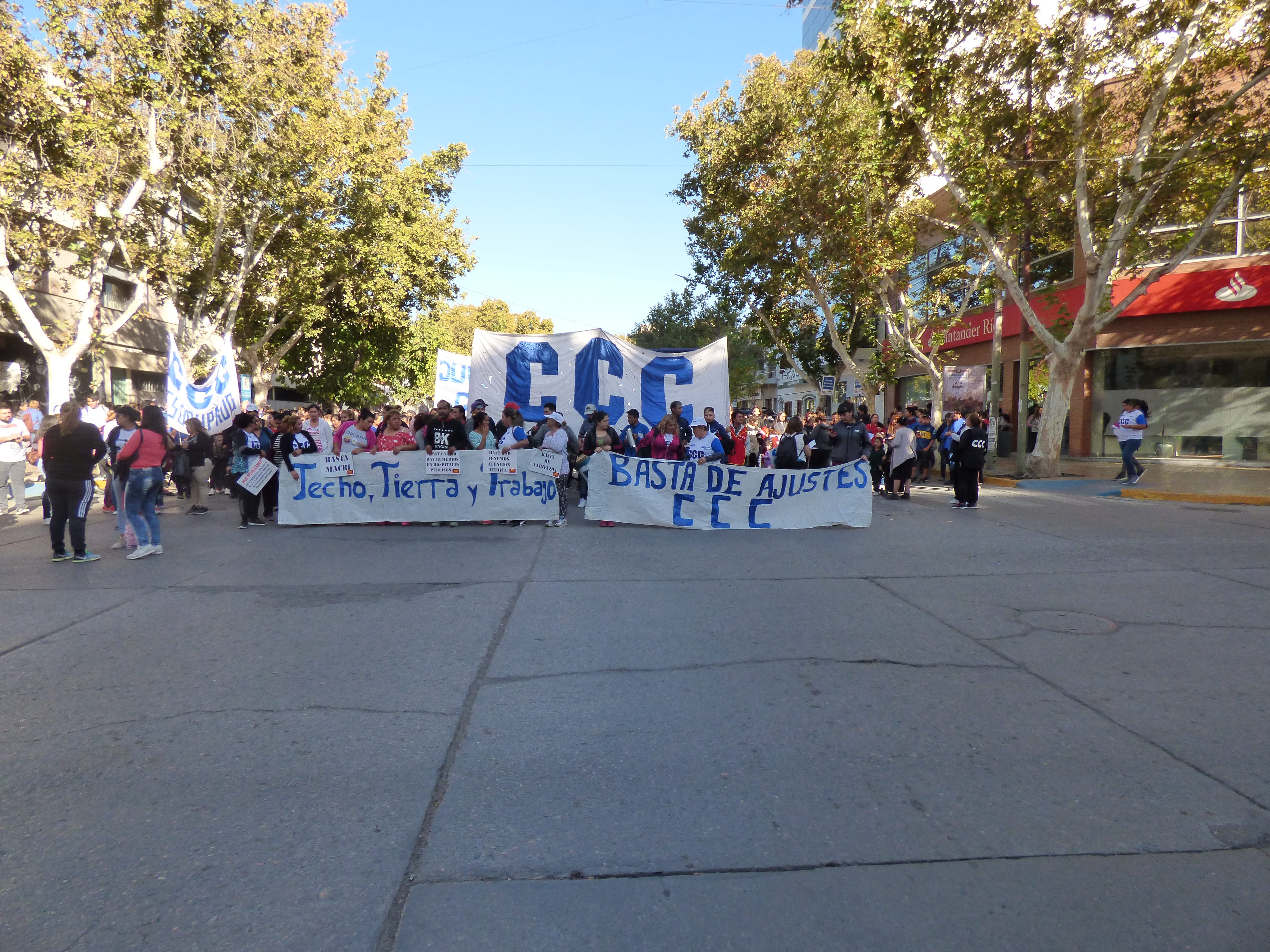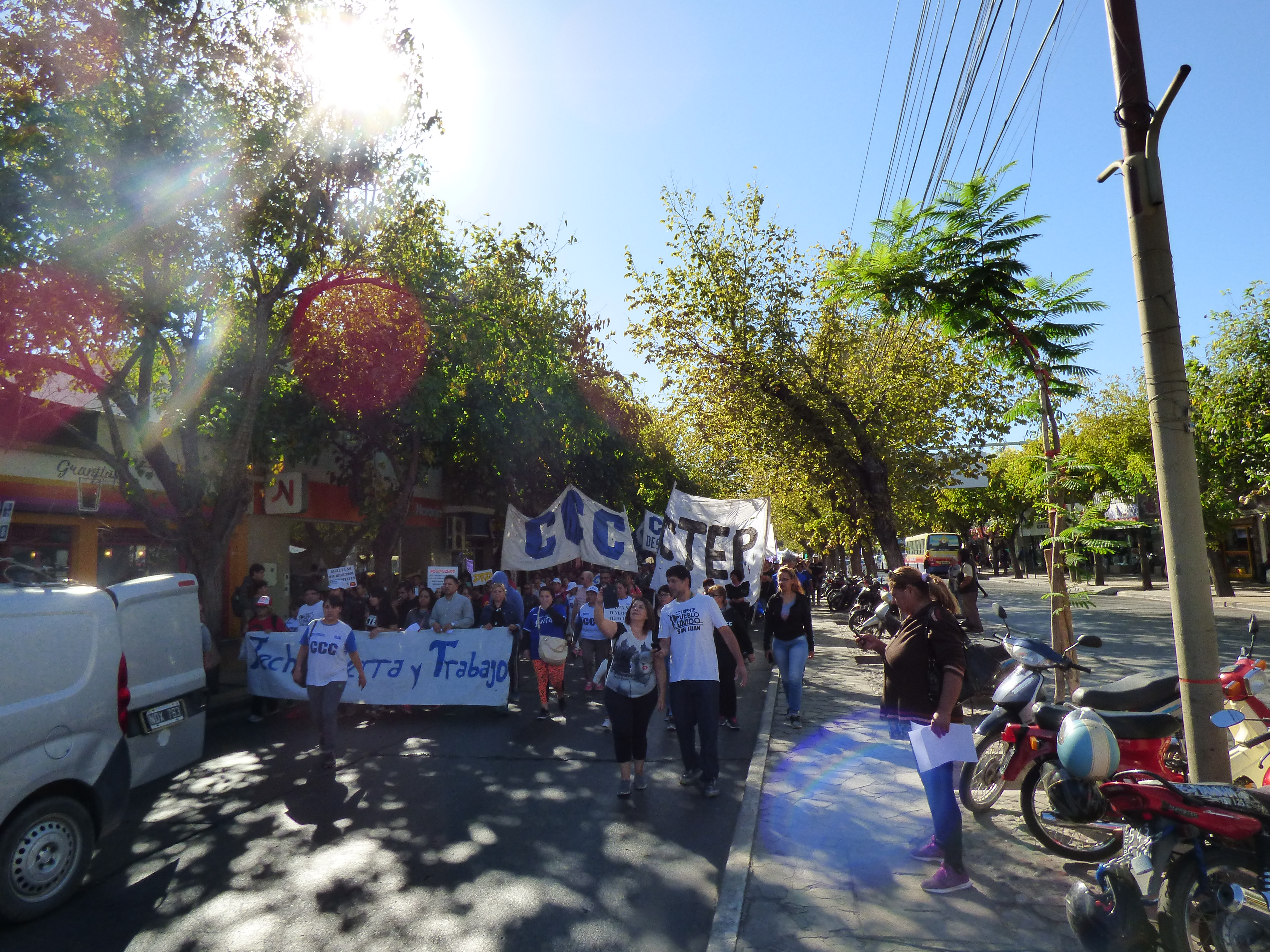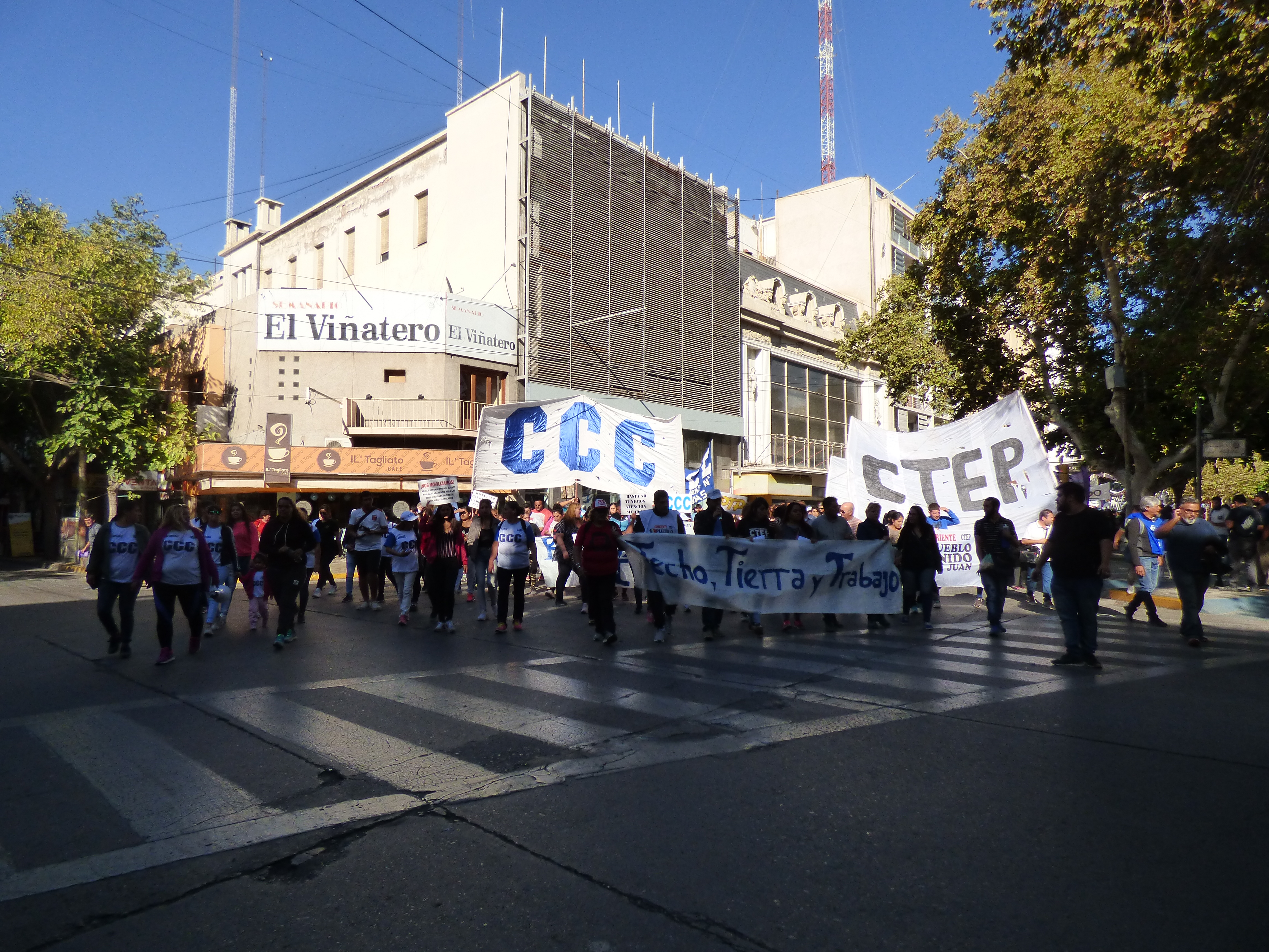 Esta mañana en el centro sanjuanino se replicó la Jornada y Movilización Nacional de las organizaciones sociales contra las medidas del gobierno provincial y nacional, el recorte y ajuste de los programas sociales. Y esta mañana se reunieron distintas organizaciones para garantizar la jornada, estuvieron la CCC, CTEP, MOVIEMIENTO EVITA, PUEBLO UNIDO, PARTIDO DEL TRABAJO Y DEL PUEBLO.