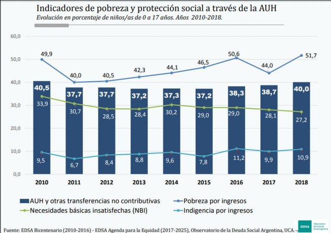 La pobreza ya alcanza al 51,7% de los niños y adolescentes en Argentina y registra el nivel más alto en una década, según el último informe de Barómetro de Deuda Social de la Infancia de la UCA. La lamentable cifra es un reflejo de un país que el año pasado tuvo una devaluación del 50,6%, una inflación de 47,6%, shock tarifario y caída del empleo.