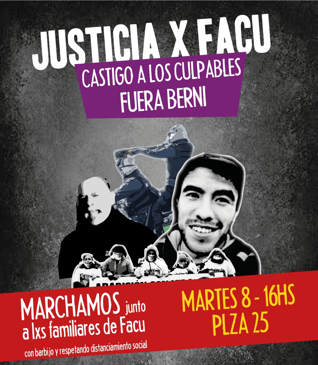 Familiares de Facundo que viven en la provincia, organizan para este martes 6 de septiembre una marcha en la Plaza 25 a las 16:00 hs, invitando a todos y todas las personas que se quieran sumar al pedido de justicia por Facundo y al reclamo por el cese del abuso y la violencia policial.