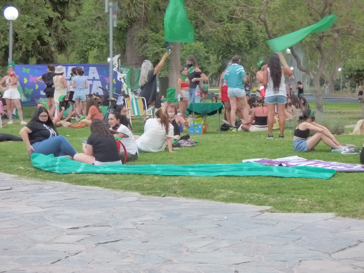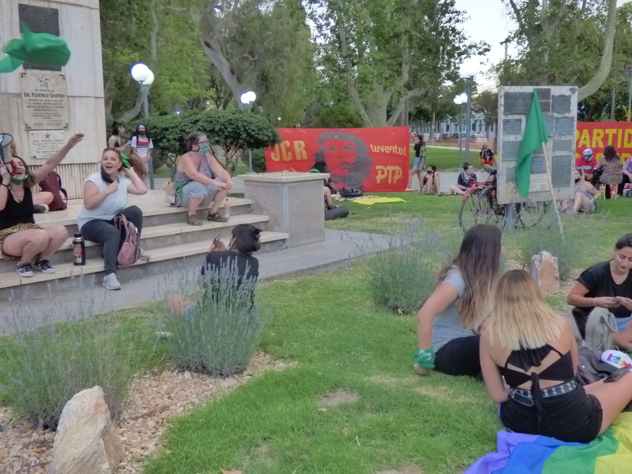 Ni el calor, ni el viento zonda pudieron parar la fiesta verde de los diversos colectivos feministas de San Juan que celebraban una historia de militancia frente a la legislatura.