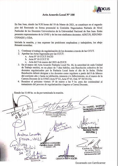 Es necesario destacar la importancia del acta firmada en el día de hoy que ratifica y le da continuidad al proceso de regularización que cumple con el Artículo 73 de nuestro CCT. Desde ADICUS seguimos defendiendo a las y los docentes de la UNSJ porque el ingreso a la carrera docente no solo le da estabilidad laboral sino que le otorga la ciudadanía universitaria plena a los y las docentes efectivizadas.
