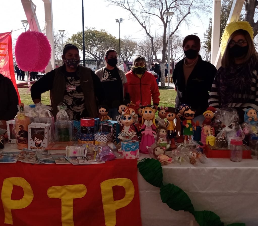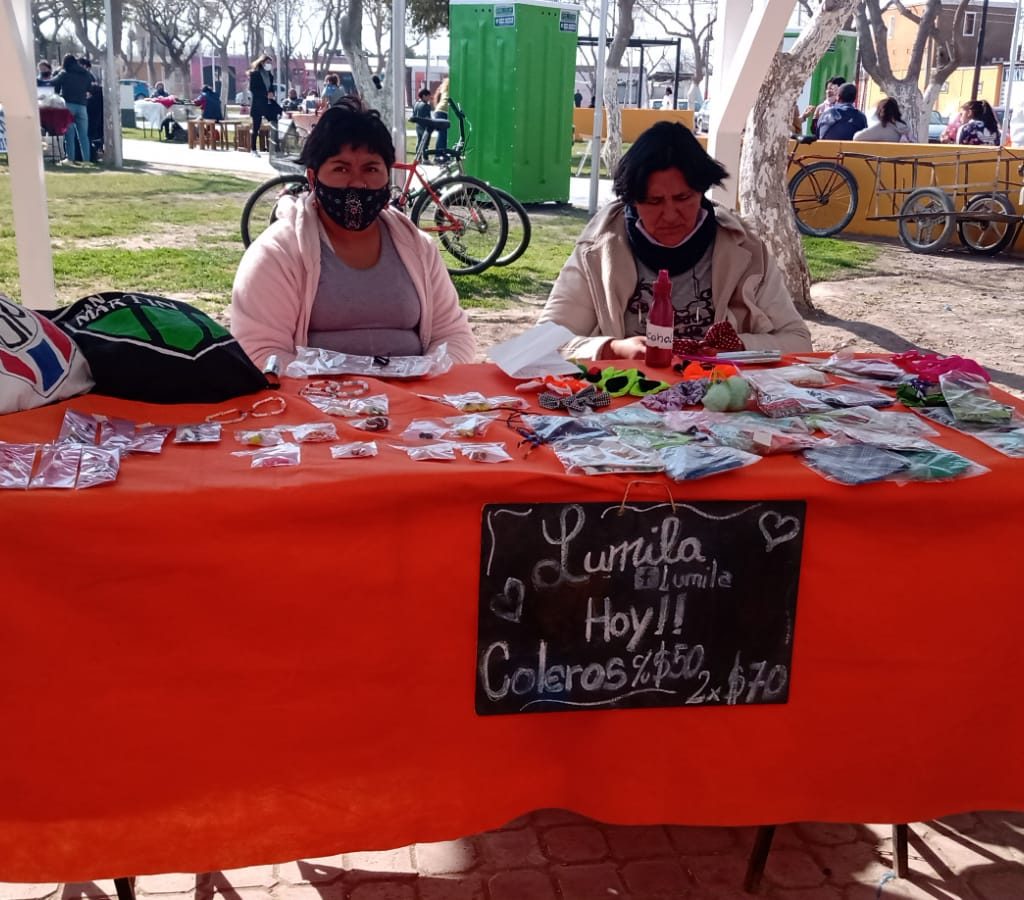 Otra de las expositoras que llegó al lugar es Betty, quien junto a sus colegas lleva a delante un emprendimiento de textil y marroquinería. “Este día ha sido favorable porque hemos podido sacar productos que teníamos estancados para la venta”, comentó. Del mismo modo, pero desde el departamento de Rawson, Carmen de la unidad productiva Coticorp se dio cita en el lugar para mostrar sus tejidos, impresiones y costuras. Así mismo, hizo lo suyo Emilse del departamento Capital quien se dedica a realizar artículos en mosaiquismo. “Nuestro grupo está encargado de hacer producciones elaboradas por mosaiquismo cuadros, macetas, botellas, hemos hecho también muñecas, y hemos implementado también hacer cosas con madera y mosaiquismo por ejemplo percheros en el cual se coloca el mosaico con forma de flores, y hemos estado con eso por ahora”, sostuvo entusiasmada la emprendedora.