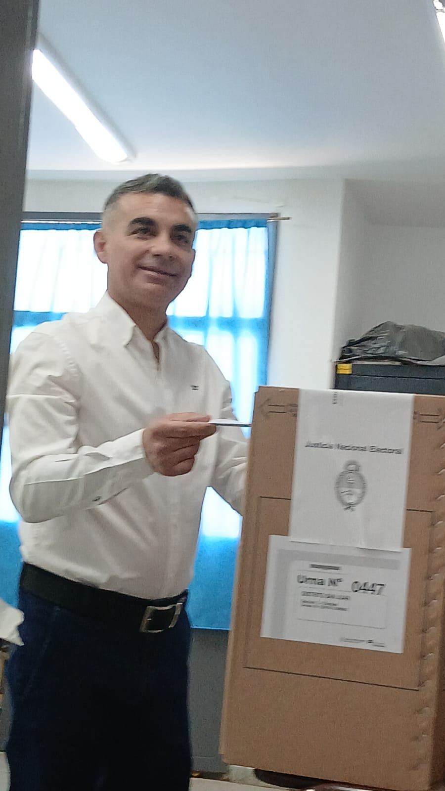 El candidato a diputado nacional por Fuerza San Juan, Fabián Gramajo, emitió su voto a primera hora en la Escuela Policía Federal, ubicada en el Barrio Chimbas II.