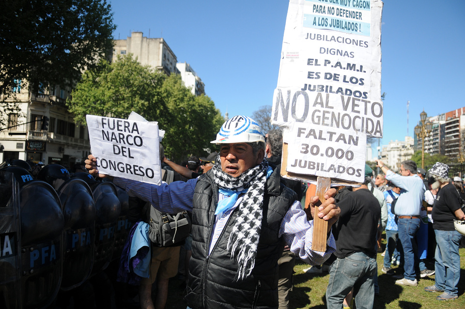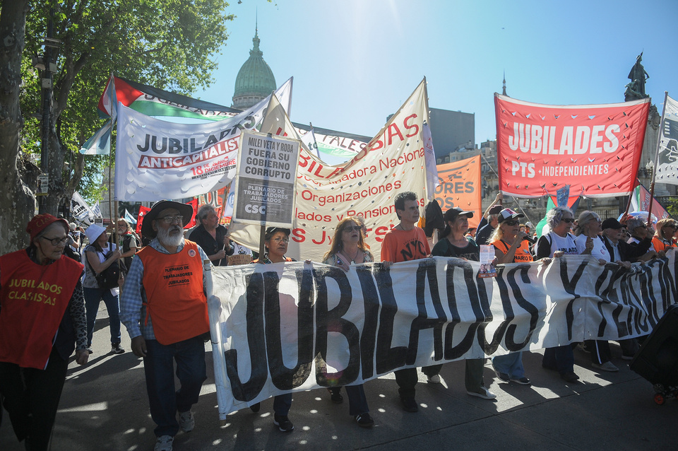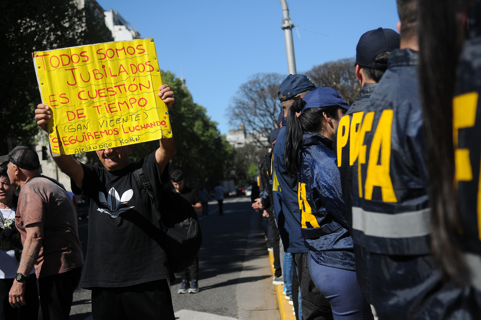 Este miércoles se realizó una nueva marcha de jubiladas y jubilados en el Congreso con apoyo de organizaciones sociales y sindicales. Mientras el Gobierno congela el bono jubilatorio a 70 mil pesos, continúa la protesta por mejoras en el haber previsional que les permita cubrir la canasta básica. Imágenes de otra jornada represiva bajo las órdenes de la ministra de Seguridad, Patricia Bullrich.