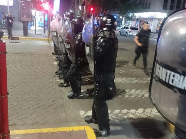 El viernes la policía reprimió violentamente tanto a quienes se manifestaban pacíficamente en el KM 0 como a quienes realizaban la pintada de un mural en defensa del agua.