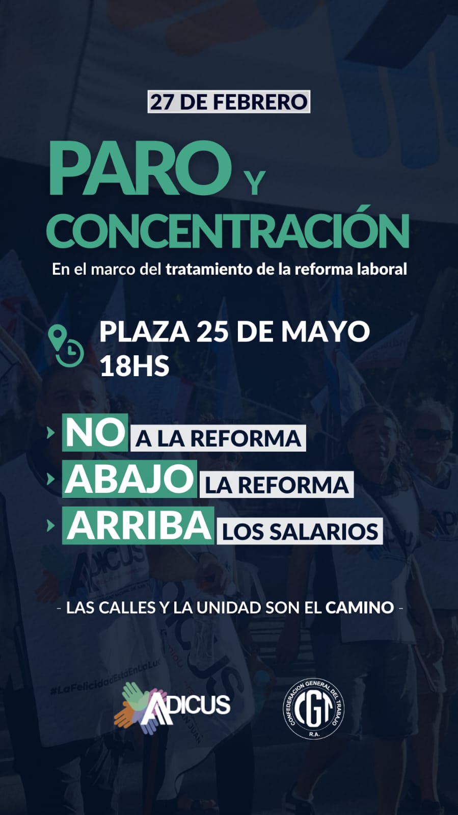 La cita será a las 18 horas en la Plaza 25 de Mayo, bajo las consignas: “No a la reforma”, “Abajo la reforma” y “Arriba los salarios”.