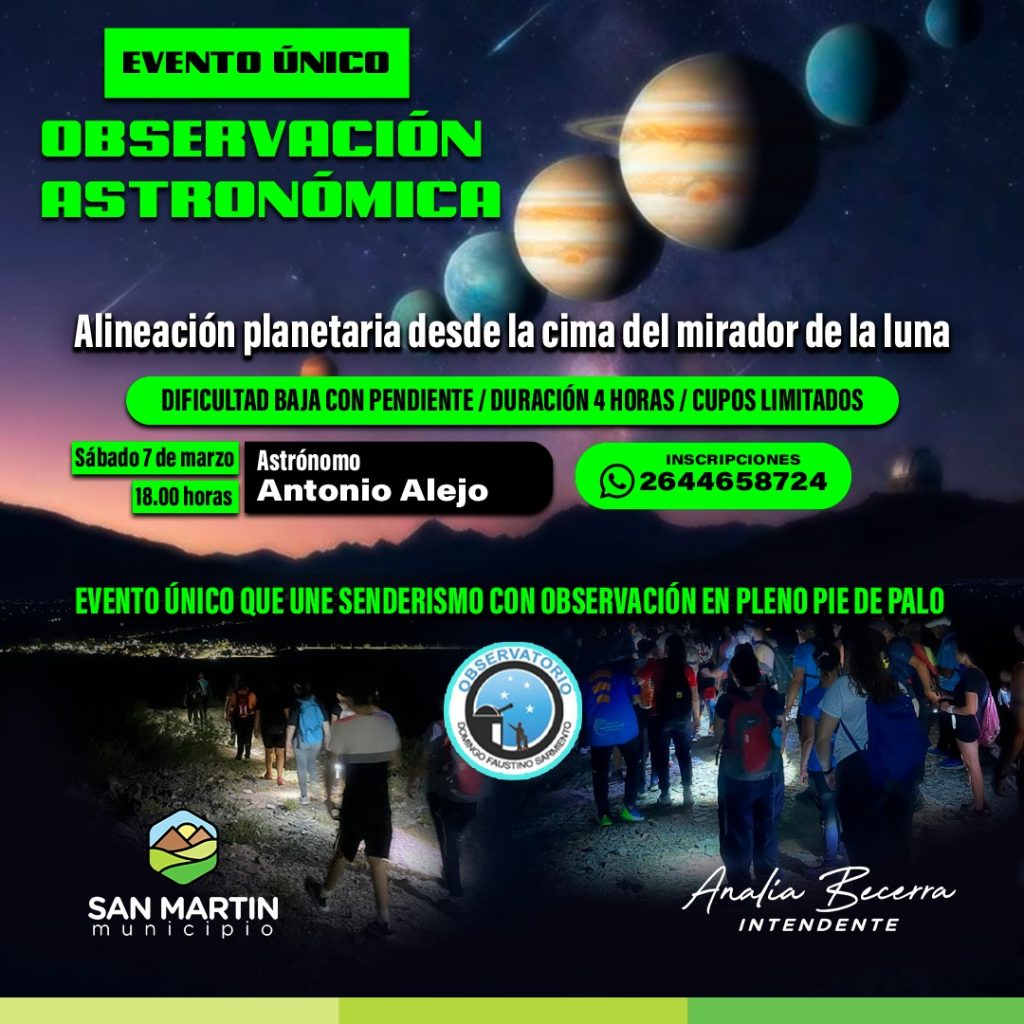 La jornada contará con la guía del astrónomo Antonio Alejo, quien acompañará la observación de una alineación planetaria, brindando información y conocimientos que permitirán a los participantes comprender mejor el fenómeno y enriquecer la experiencia.